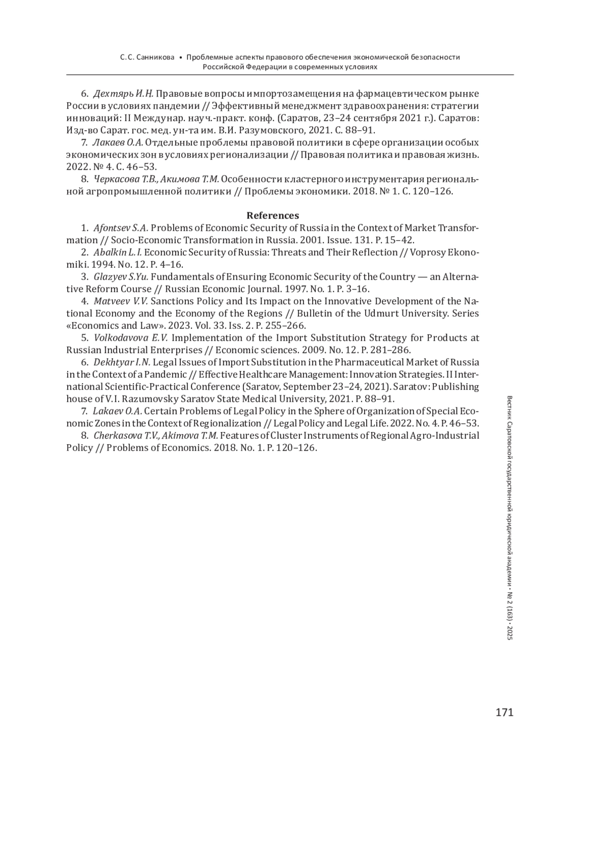 3. Глазьев С. Ю. Основы обеспечения экономической безопасности страны - альтернативный реформационный курс // Российский экономический журнал. 1997. № 1. С. 3-16.
