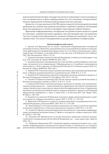 11. 	Огнева К. О. Процессуальный порядок рассмотрения дел о признании информационных материалов экстремистскими // Право и государство: теория и практика. 2022. № 1(205). С. 391-394.