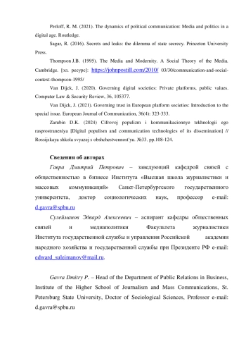 2. 	Зарубин Д.К. Цифровой популизм и коммуникационные технологии его распространения// Российская школа связей с общественностью. 2024, №33. С.108-124.