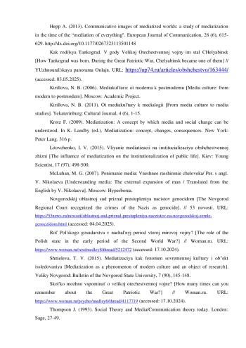11. 	Губанова М. И. Медиатизация реальности: теоретический аспект. Тольятти: Вестник Волжского университета имени В.Н. Татищева, №2, 2021. С. 84-91.