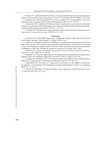 3. Макарова О. А. Пределы свободы корпоративного договора // Законы России: опыт, анализ, практика. 2018. № 7. С. 55-59. EDN: YVYIJF