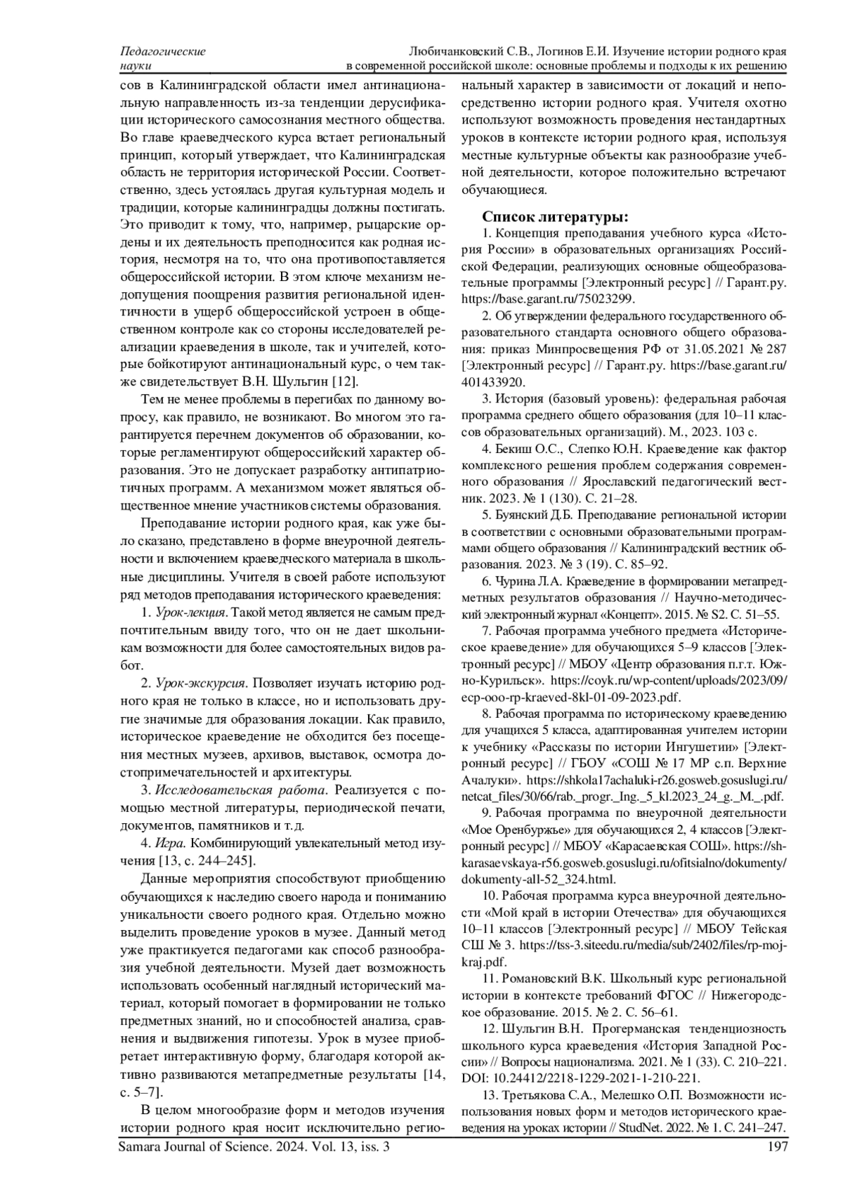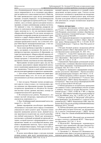 4. Бекиш О.С., Слепко Ю.Н. Краеведение как фактор комплексного решения проблем содержания современного образования // Ярославский педагогический вестник. 2023. № 1 (130). С. 21-28. EDN: HGIZOA