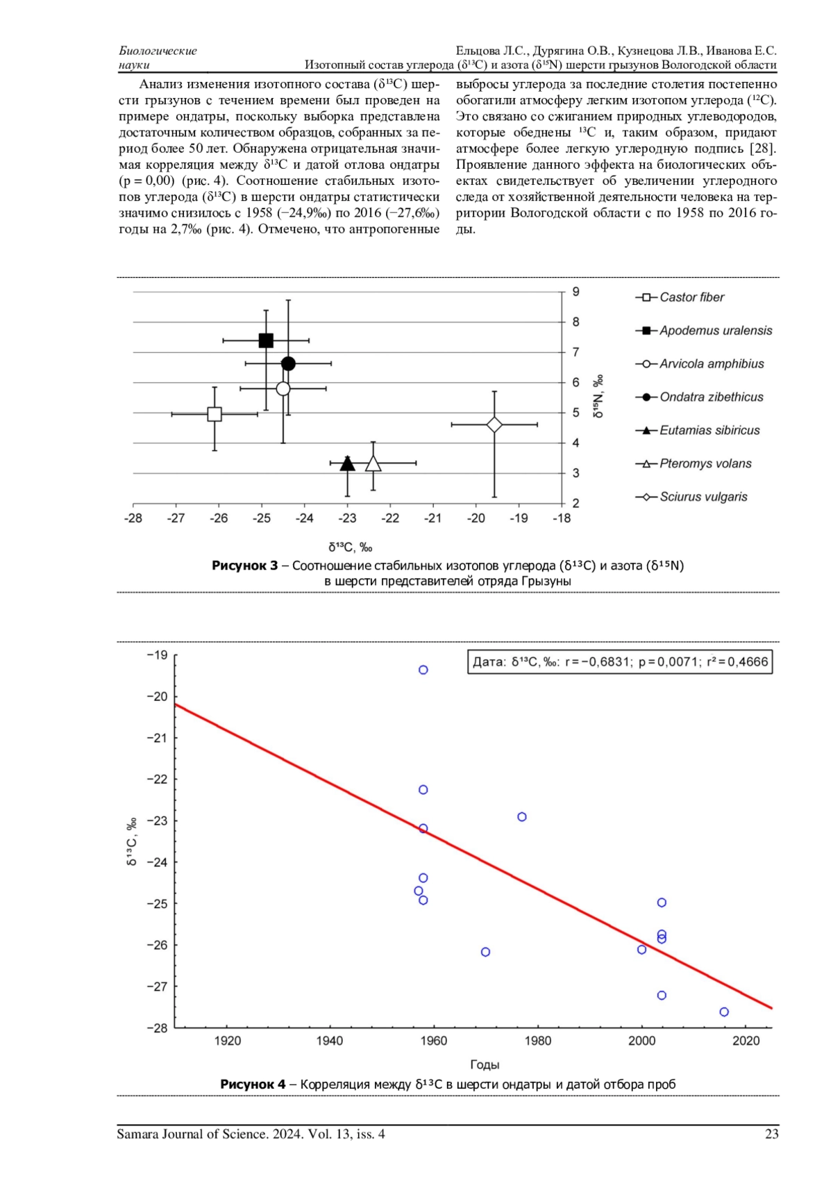 4. 	Karmanova T.N., Feoktistova N.Y., Tiunov A.V. High δ¹³C values in red squirrels Sciurus vulgaris explained by a reliance on conifer seeds // Isotopes in Environmental and Health Studies. 2023. Vol. 59, iss. 2. P. 180-191. DOI: 10.1080/10256016.2023.2179045 EDN: PRZTUB