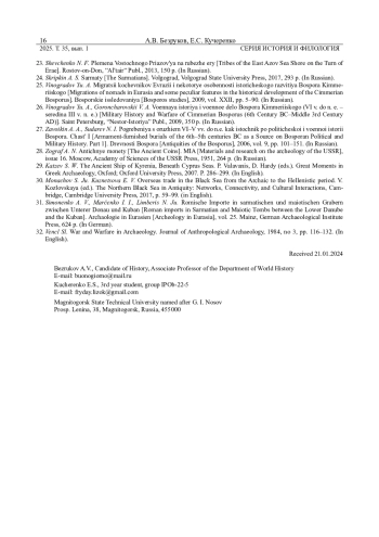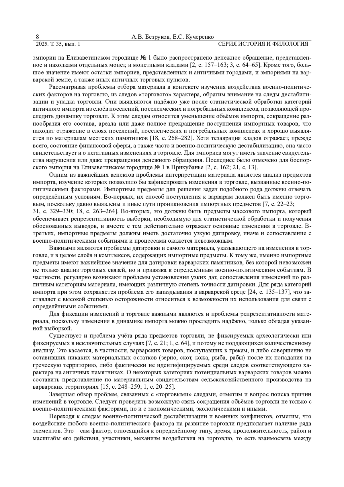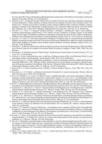 6. Безруков А.В., Улитин В.В. Варварские погребальные комплексы в контексте торговли и военно-политической динамики // Проблемы истории, филологии, культуры. 2023. № 4 (82). С. 79-86. EDN: GZARFZ