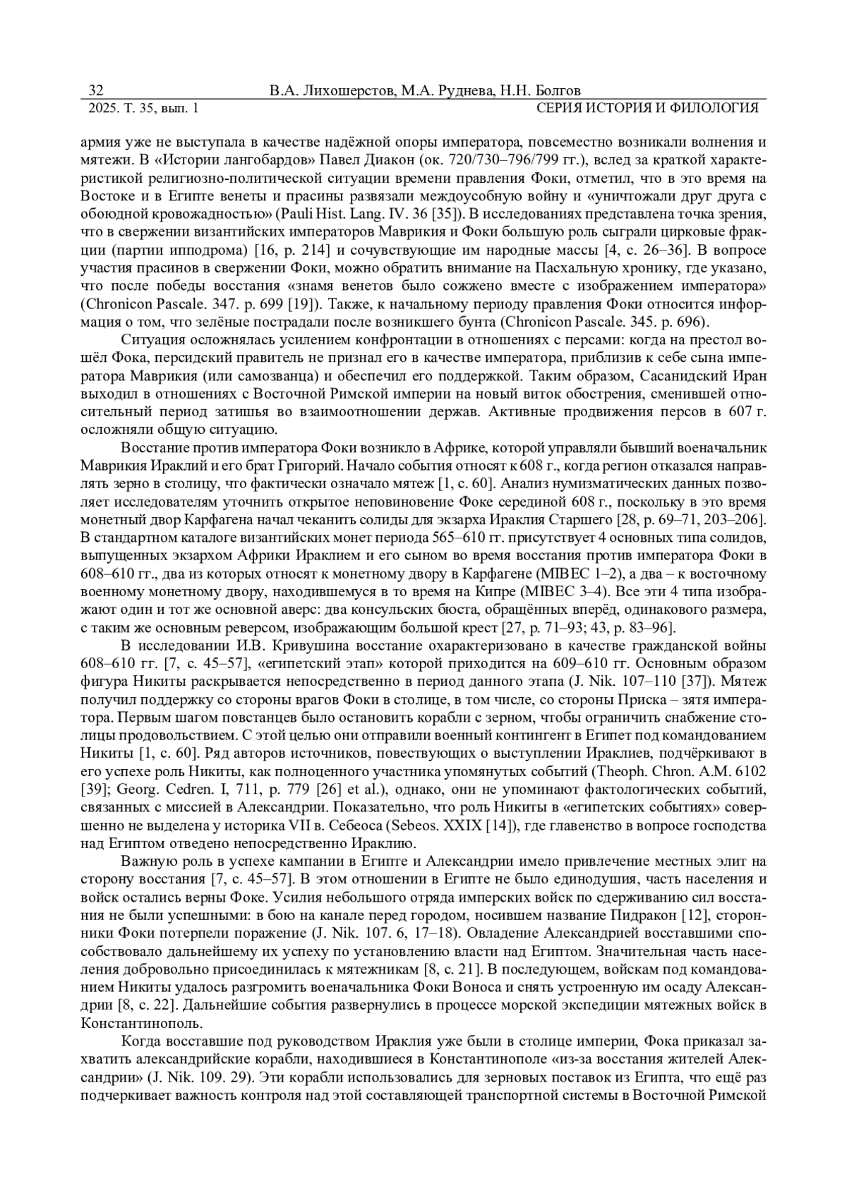 43. 	Woods D. Reading the consular solidi of the revolt of the Heraclii, 608-610 // Schweizerische numismatische Rundschau. 2016. № 95. P. 83-96.