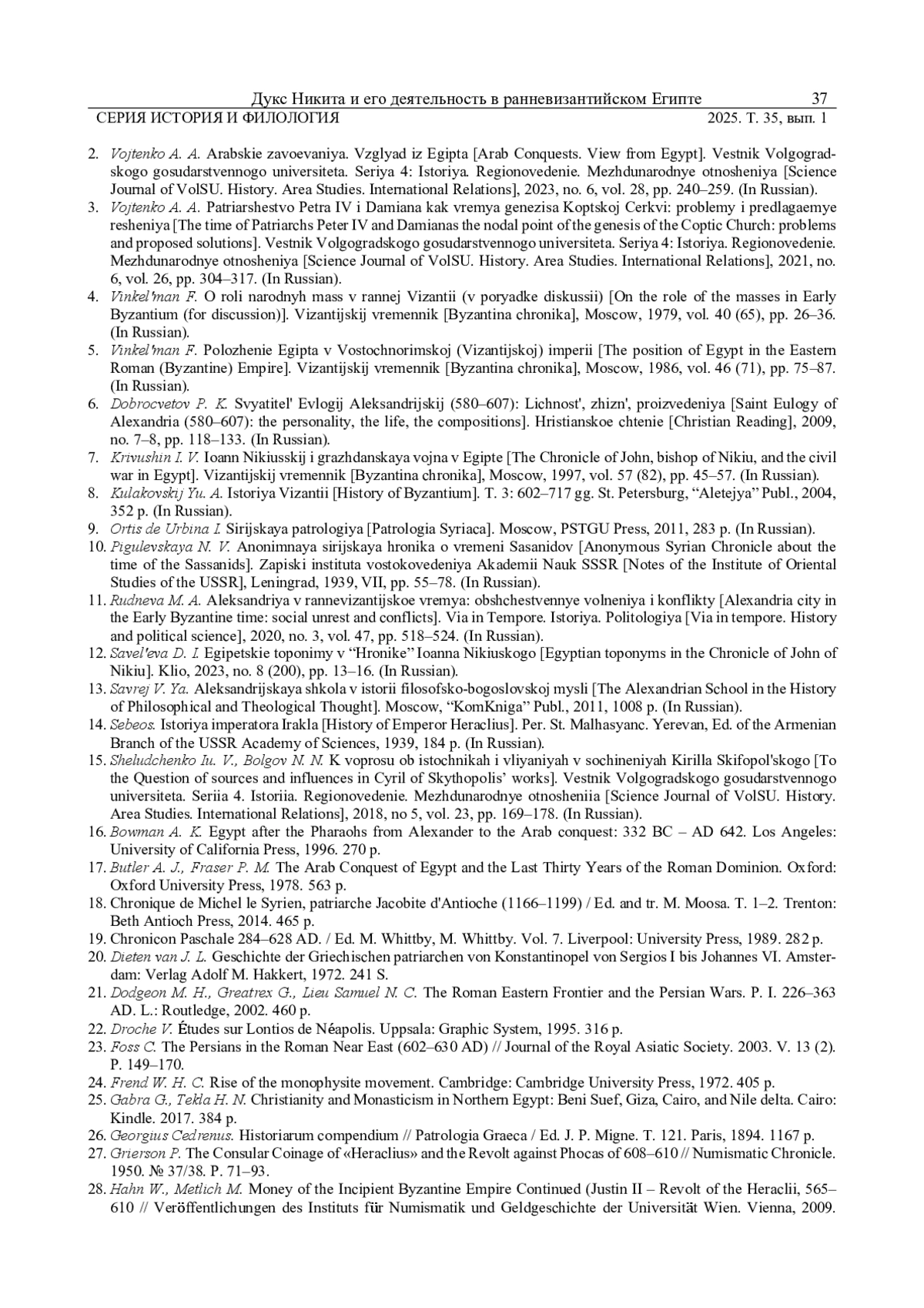 2. 	Войтенко А.А. Арабские завоевания. Взгляд из Египта // Вестник Волгоградского государственного университета. Серия 4: История. Регионоведение. Международные отношения. 2023. Т. 28. № 6. С. 240-259. EDN: SHAIVG