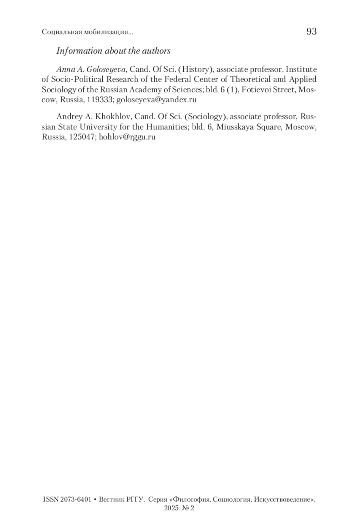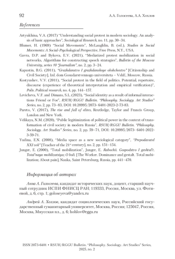3. Гавра, Быкова 2021 - Гавра Д.П., Быкова Е.В. Медиатизированная мобилизация протеста в социальных сетях: алгоритмы построения речевых стратегий // Вестник Моск. ун-та. Сер. 10. Журналистика. 2021. № 2. С. 3-24.