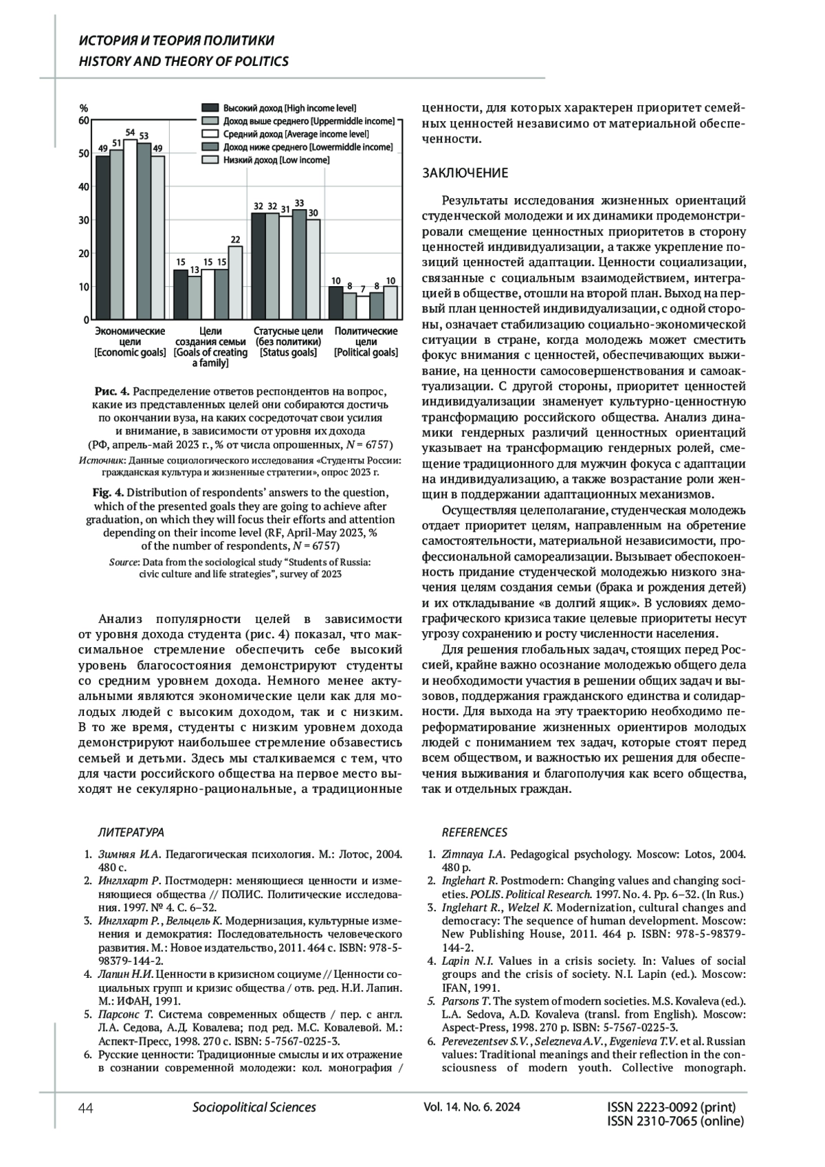 2. 	Инглхарт Р. Постмодерн: меняющиеся ценности и изменяющиеся общества // ПОЛИС. Политические исследования. 1997. № 4. С. 6-32. EDN: ESCOIL