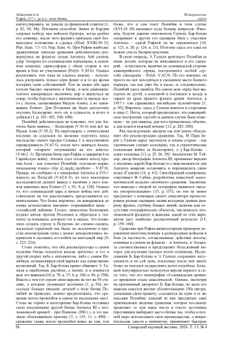 1. 	Galili E. Raphia, 217 B.C.E., Revisited // Scripta Classica Israelica. 1976/77. Vol. 3. P. 52-126.