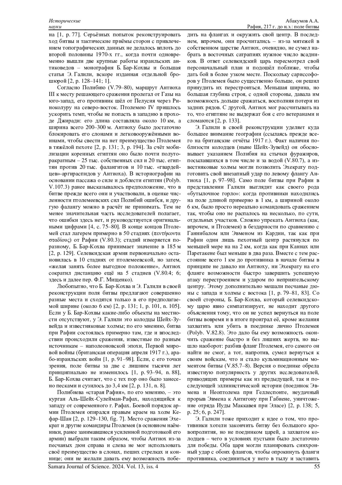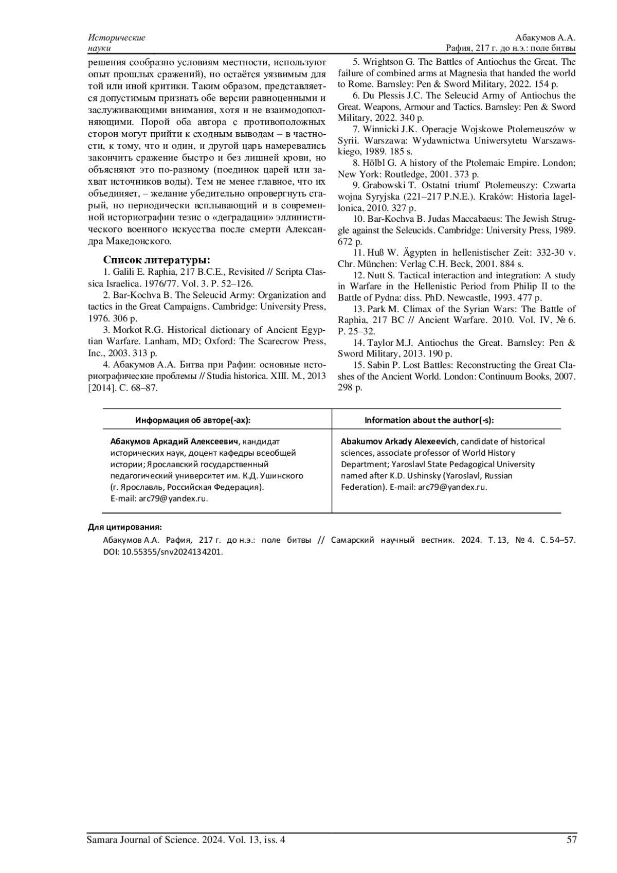 4. 	Абакумов А.А. Битва при Рафии: основные историографические проблемы // Studia historica. XIII. М., 2013 [2014]. С. 68-87.