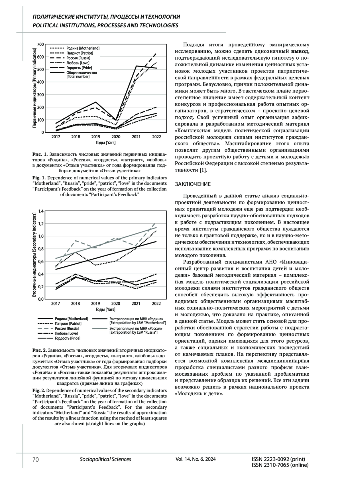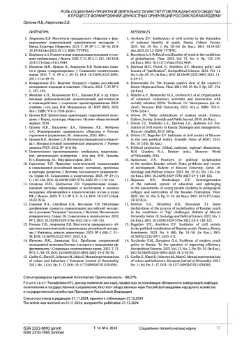 Smirnov V.A., Skryabina O.B., Bessonova T.I. Some dysfunctions of the process of socialization of Russian youth in the conditions of “big” challenges. Bulletin of Moscow University. Series 18: Sociology and Political Science. 2022. No. 1. (In Rus.). DOI: 10.24290/1029-3736-2022-28-1-110-125 EDN: DEHPJL