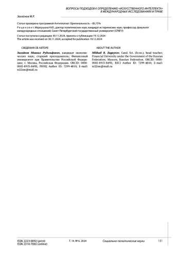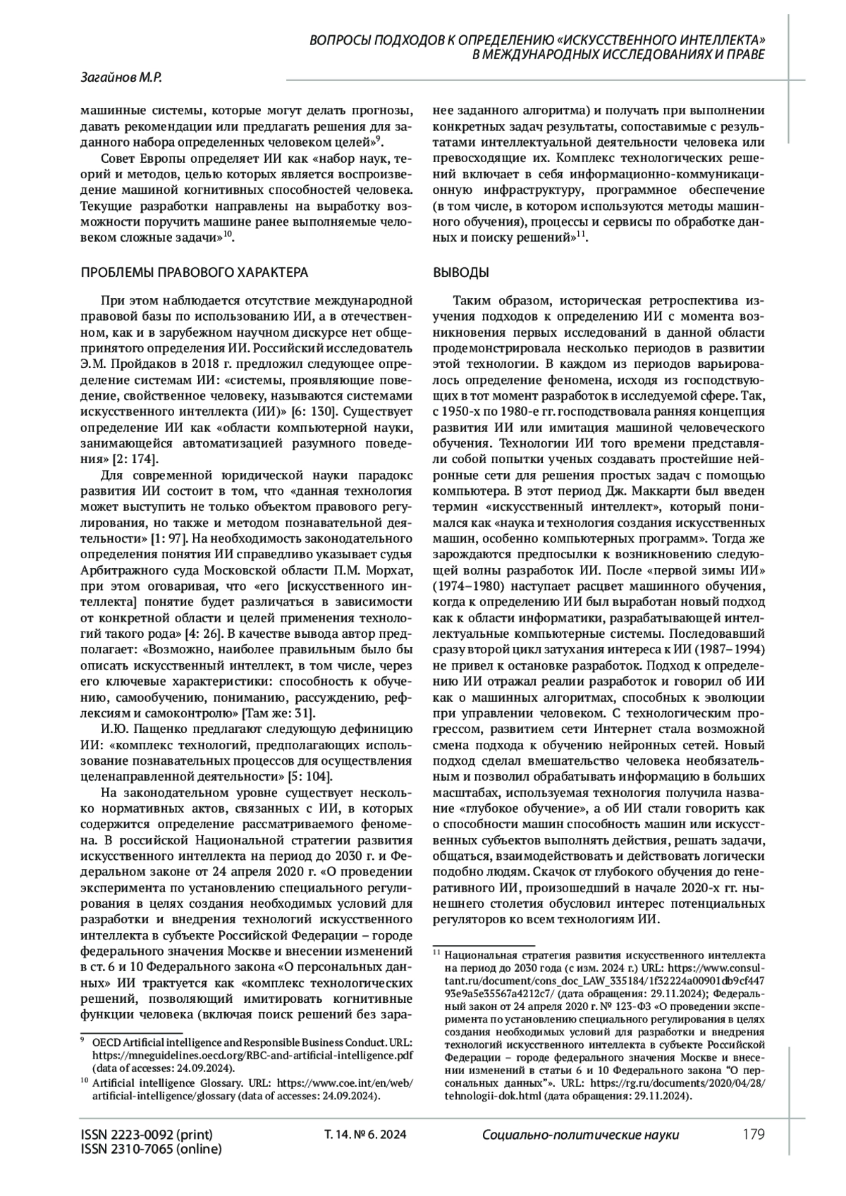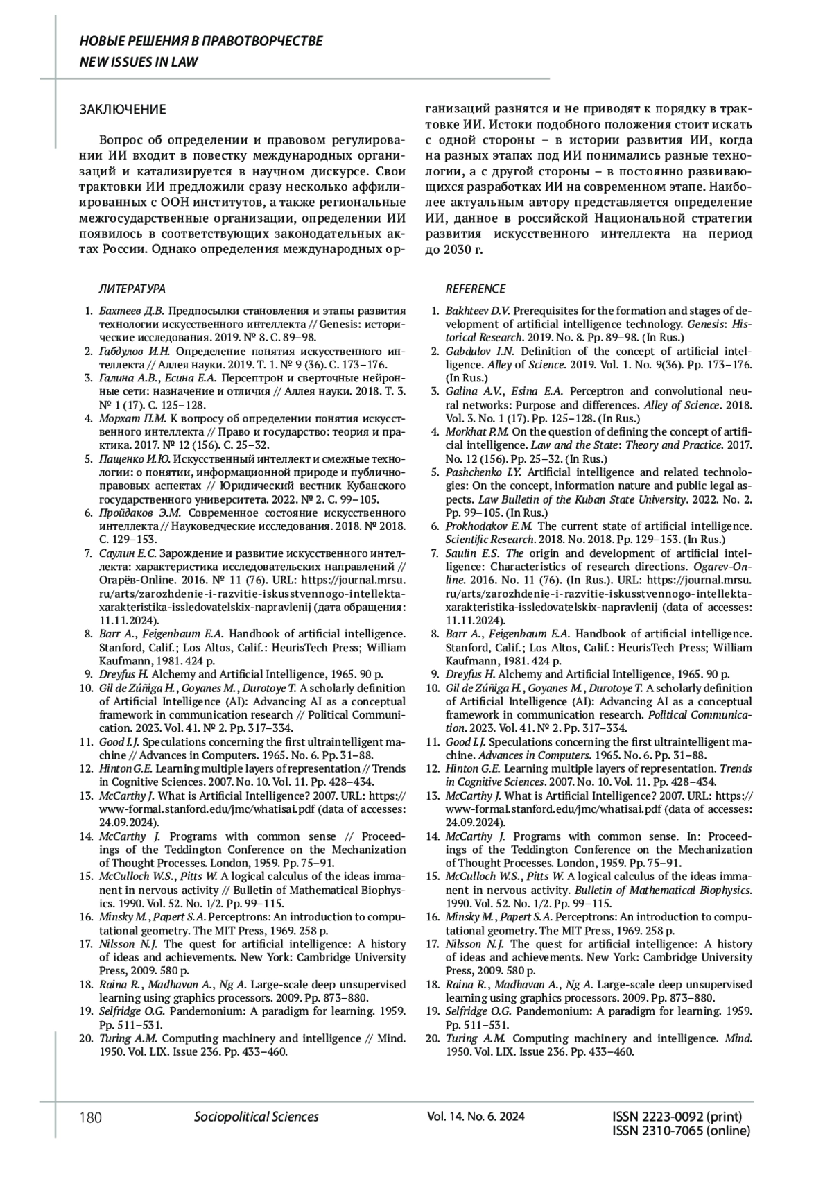 4. 	Морхат П.М. К вопросу об определении понятия искусственного интеллекта // Право и государство: теория и практика. 2017. № 12 (156). С. 25-32.