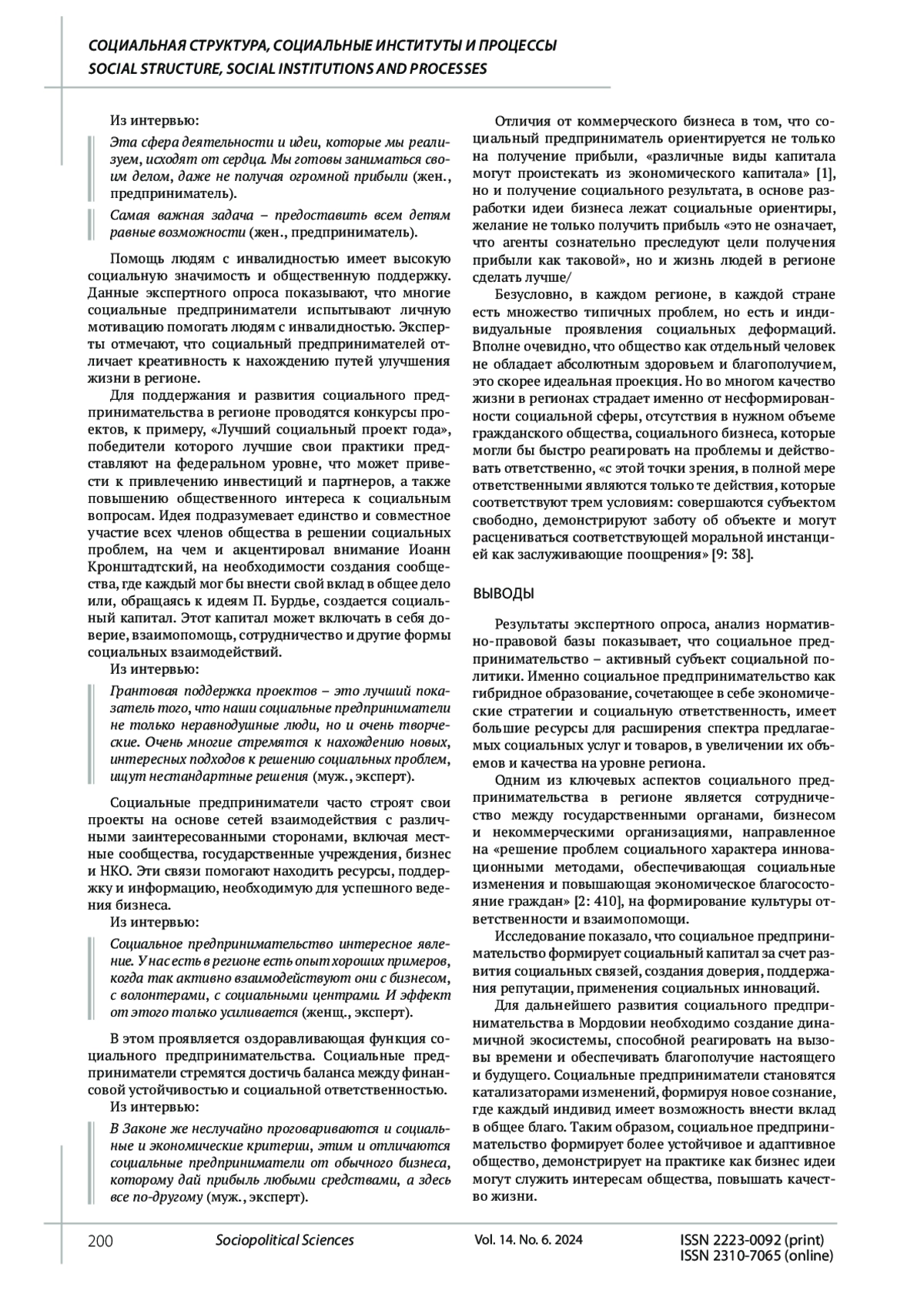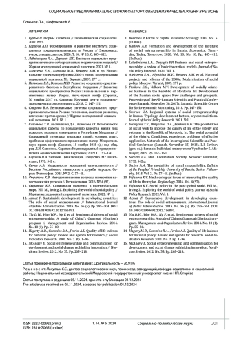 6. 	Смирнов В.А. Региональные системы социального предпринимательства в России: типология, факторы развития, ключевые противоречия // Журнал исследований социальной политики. 2021. № 1. EDN: PRGWSK
