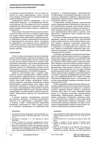 Guazaa L., Schmidt V. On the concept of “national unity”. Bulletin of the Russian Nation. 2020. No. 4 (74). Pp. 66-82. (In Rus.).