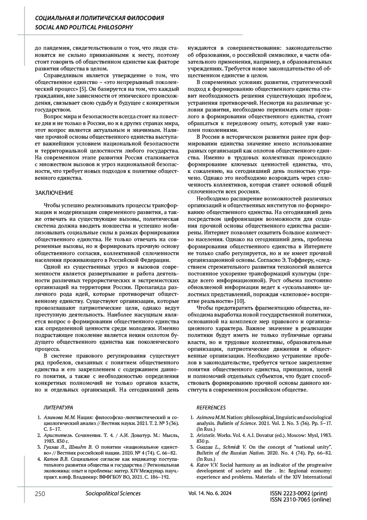 3. 	Гуазаа Л., Шмидт В. О понятии “национальное единство” // Вестник российской нации. 2020. № 4 (74). С. 66-82.