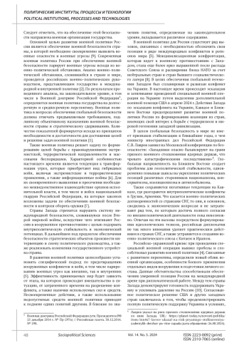 3. Кузина С.И., Сагирян И.Г., Краснова Е.А. Военная политика России на современном этапе: политико-правовые аспекты // Наука и образование: хозяйство и экономика; предпринимательство; право и управление. 2023. № 5 (156). С. 121-125. EDN: RHMDJO
