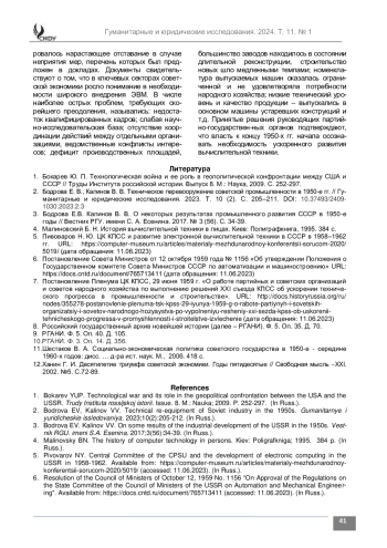 5. Пивоваров Н. Ю. ЦК КПСС и развитие электронной вычислительной техники в СССР в 1958-1962 гг. URL: https://computer-museum.ru/articles/materialy-mezhdunarodnoy-konferentsii-sorucom-2020/5019 (дата обращения: 11.06.2023)