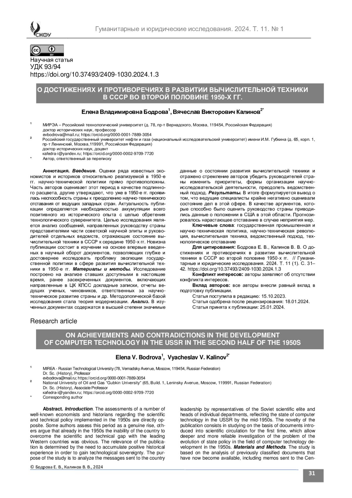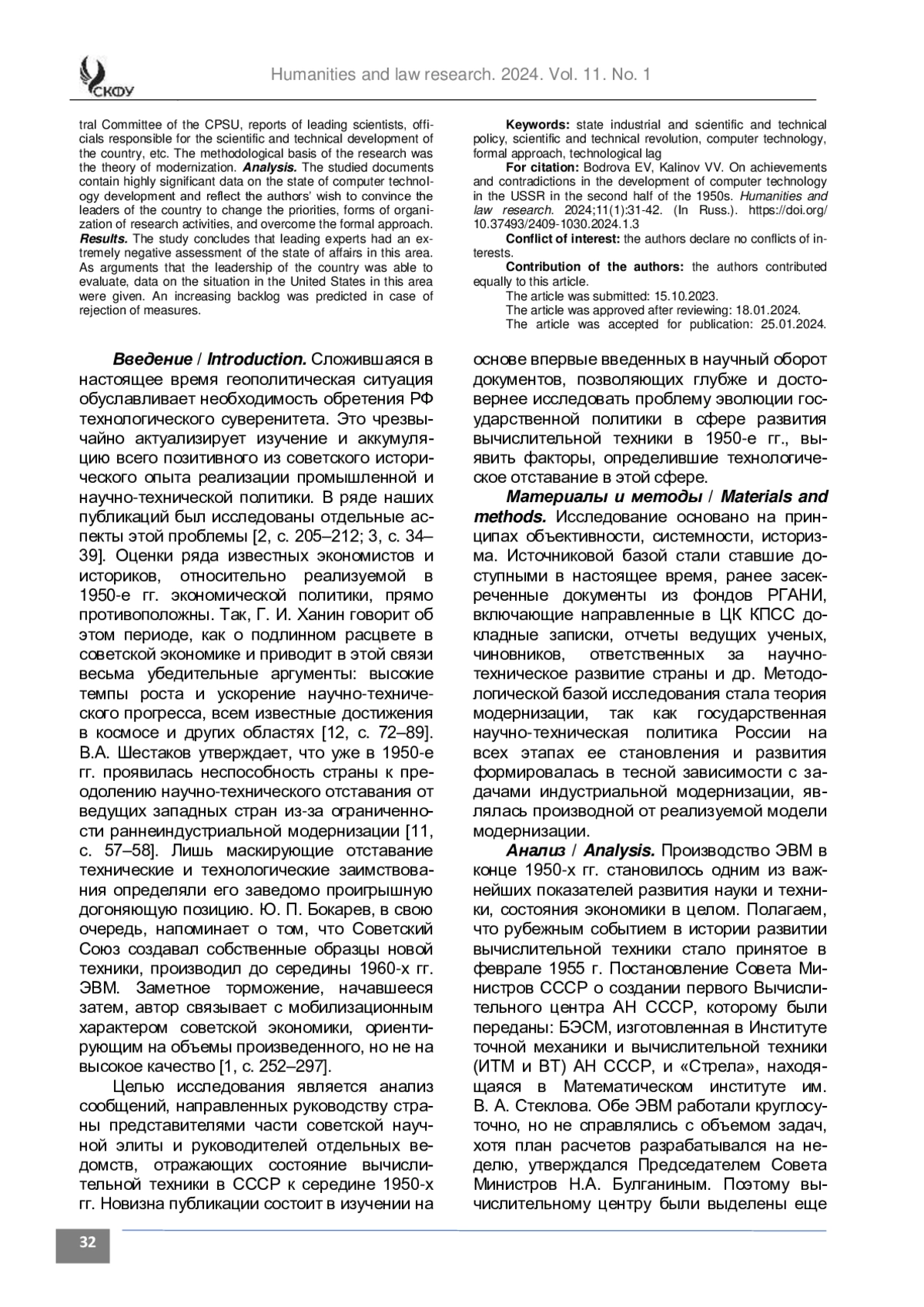2. Бодрова Е. В., Калинов В. В. Техническое перевооружение советской промышленности в 1950-е гг. // Гуманитарные и юридические исследования. 2023. Т. 10 (2). С. 205-211. https://doi.org/10.37493/2409-1030.2023.2.3
