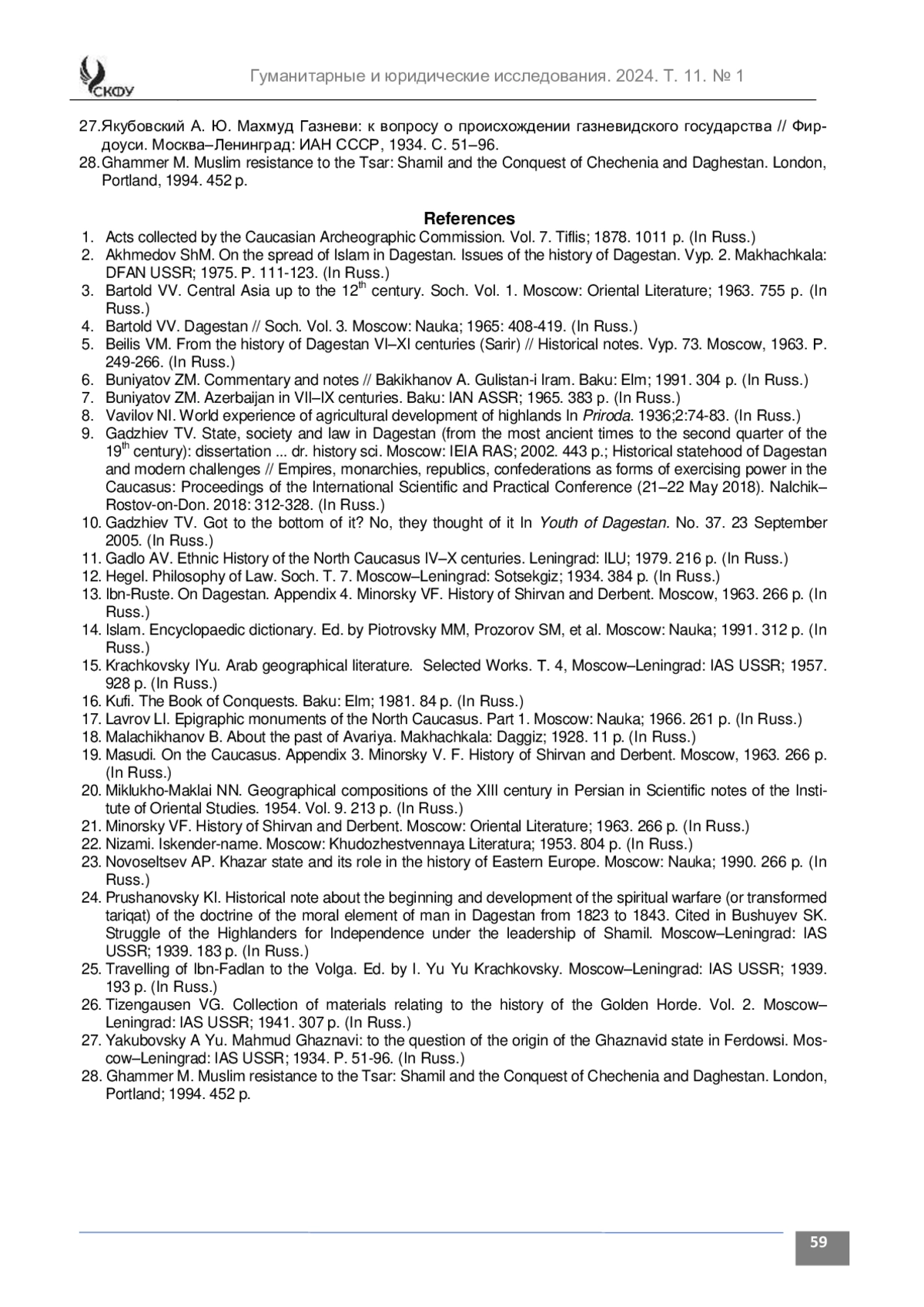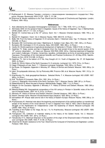 28. Ghammer M. Muslim resistance to the Tsar: Shamil and the Conquest of Chechenia and Daghestan. London, Portland, 1994. 452 p.