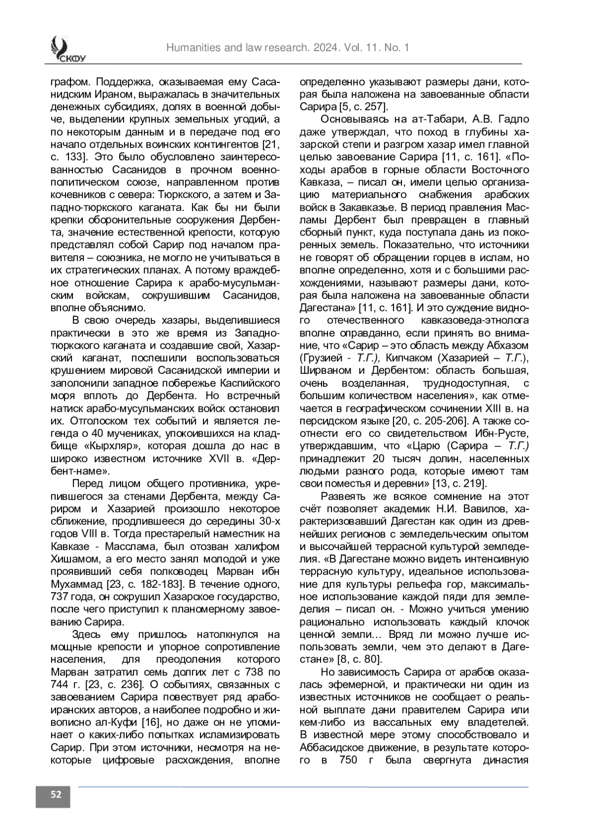 9. Гаджиев Т. В. Государство, общество и право в Дагестане (с древнейших времён до второй четверти XIX в.): диссертация … д. и. н. М.: ИЭИА РАН, 2002. 443 с.; Историческая государственность Дагестана и современные вызовы // Империи, монархии, республики, конфедерации как формы осуществления власти на Кавказе: Материалы Международной научно-практической конференции (21-22 мая 2018). Нальчик-Ростов-на-Дону, 2018. С. 312-328.