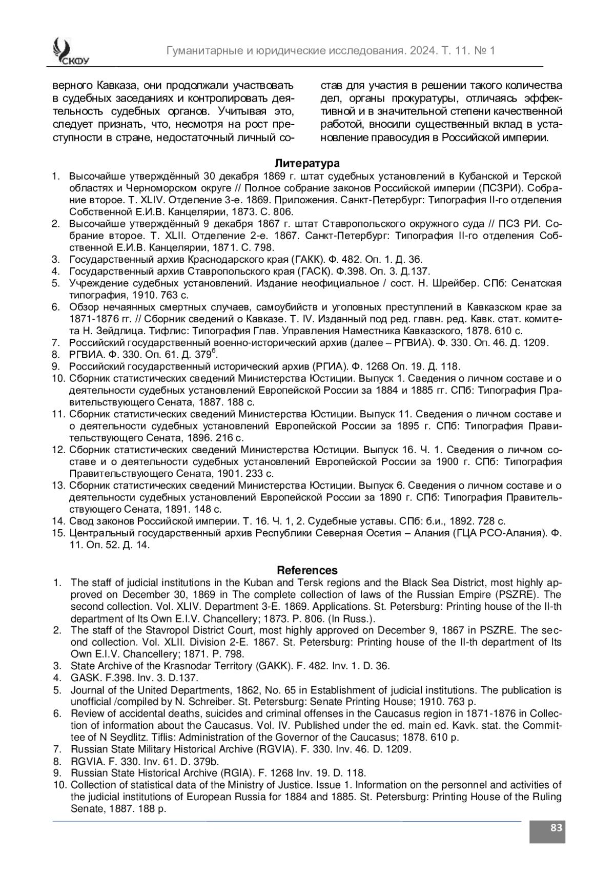 2. Высочайше утверждённый 9 декабря 1867 г. штат Ставропольского окружного суда // ПСЗ РИ. Собрание второе. Т. XLII. Отделение 2-е. 1867. Санкт-Петербург: Типография II-го отделения Собственной Е.И.В. Канцелярии, 1871. С. 798.