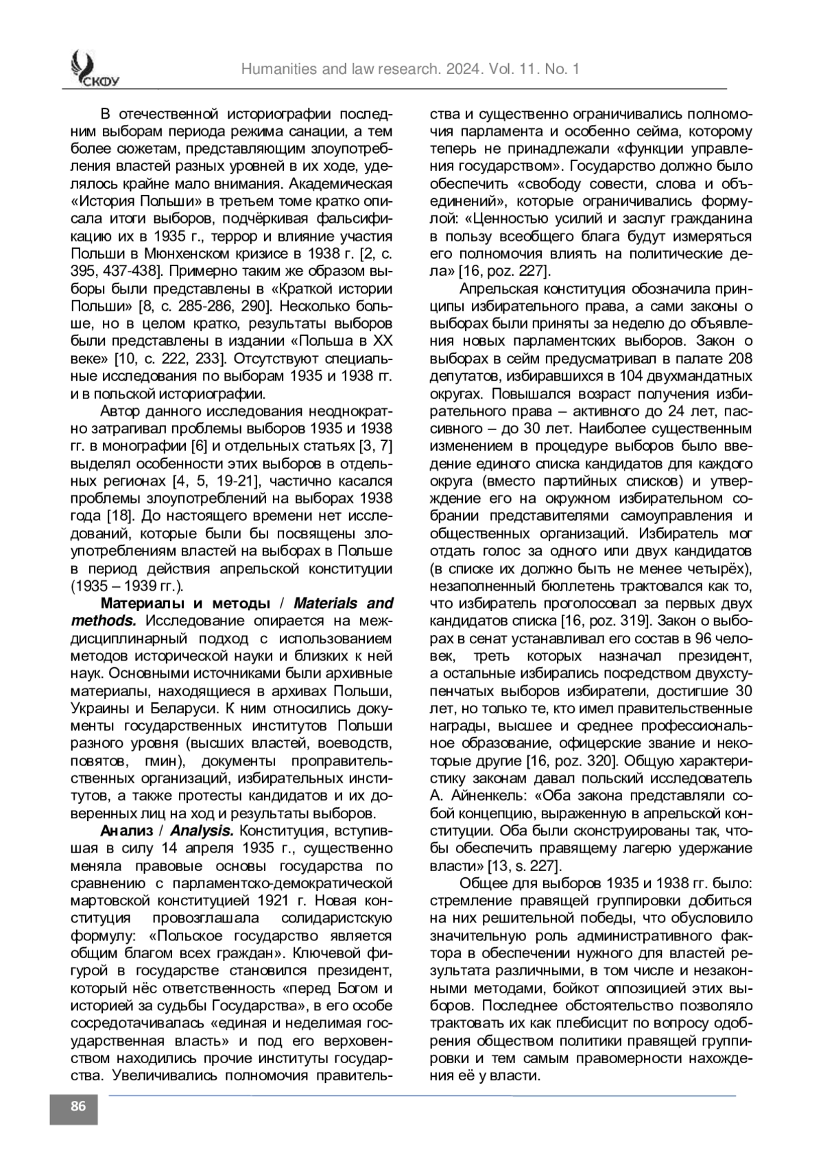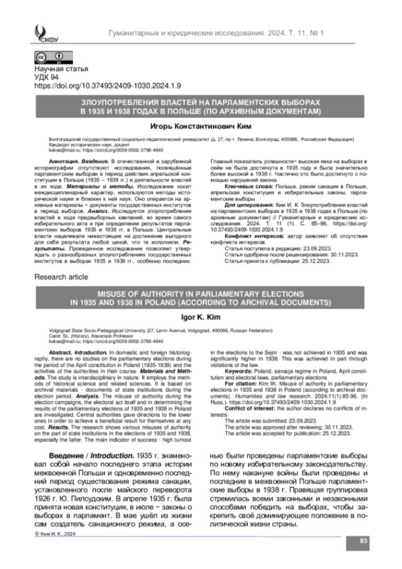 9. Ким И. К. Санационные власти в парламентских выборах 1935 года в Польше // Славяноведение. № 5, 2011. С. 3-13.