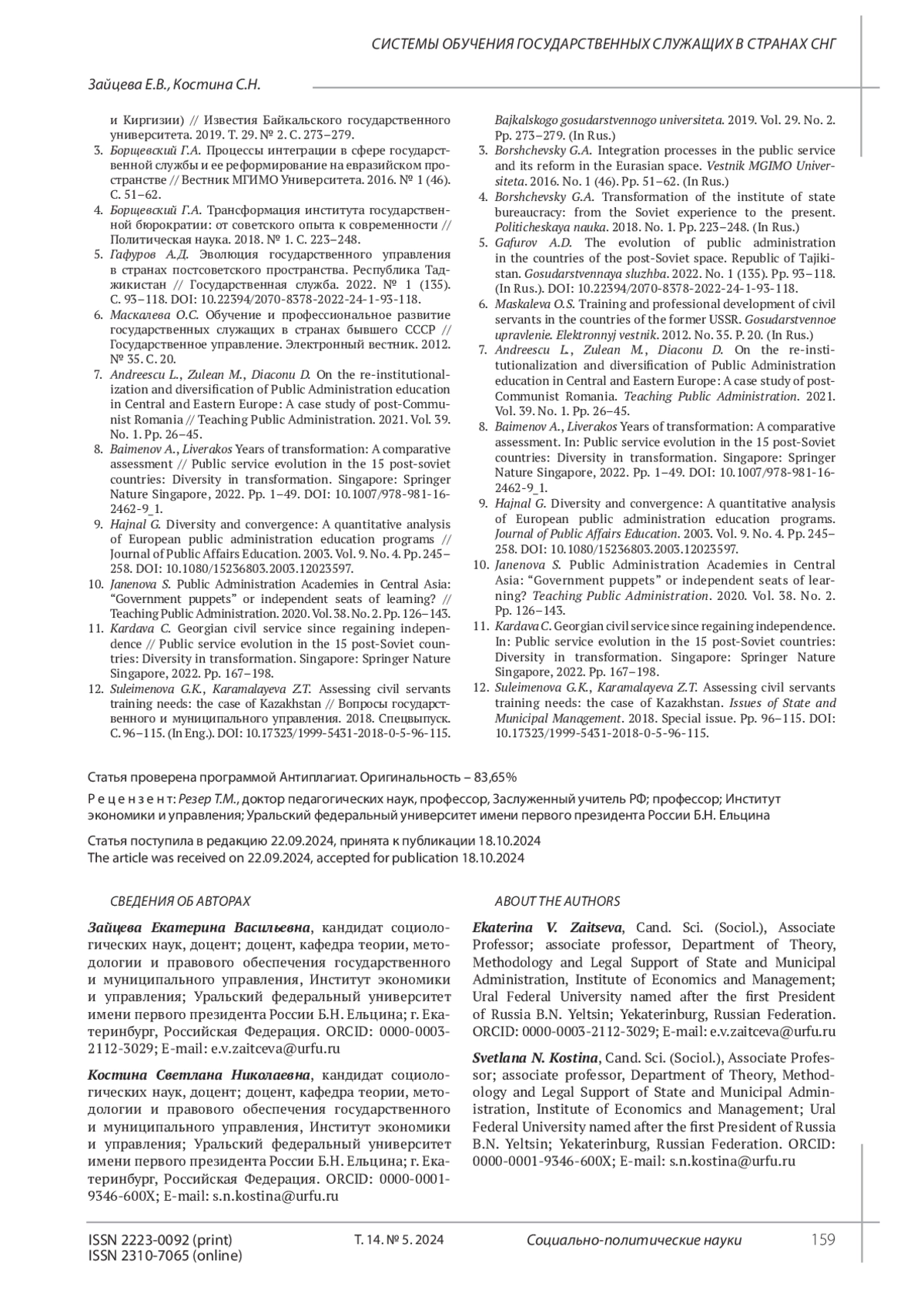 6. 	Маскалева О.С. Обучение и профессиональное развитие государственных служащих в странах бывшего СССР // Государственное управление. Электронный вестник. 2012. № 35. С. 20. EDN: PLHDDZ