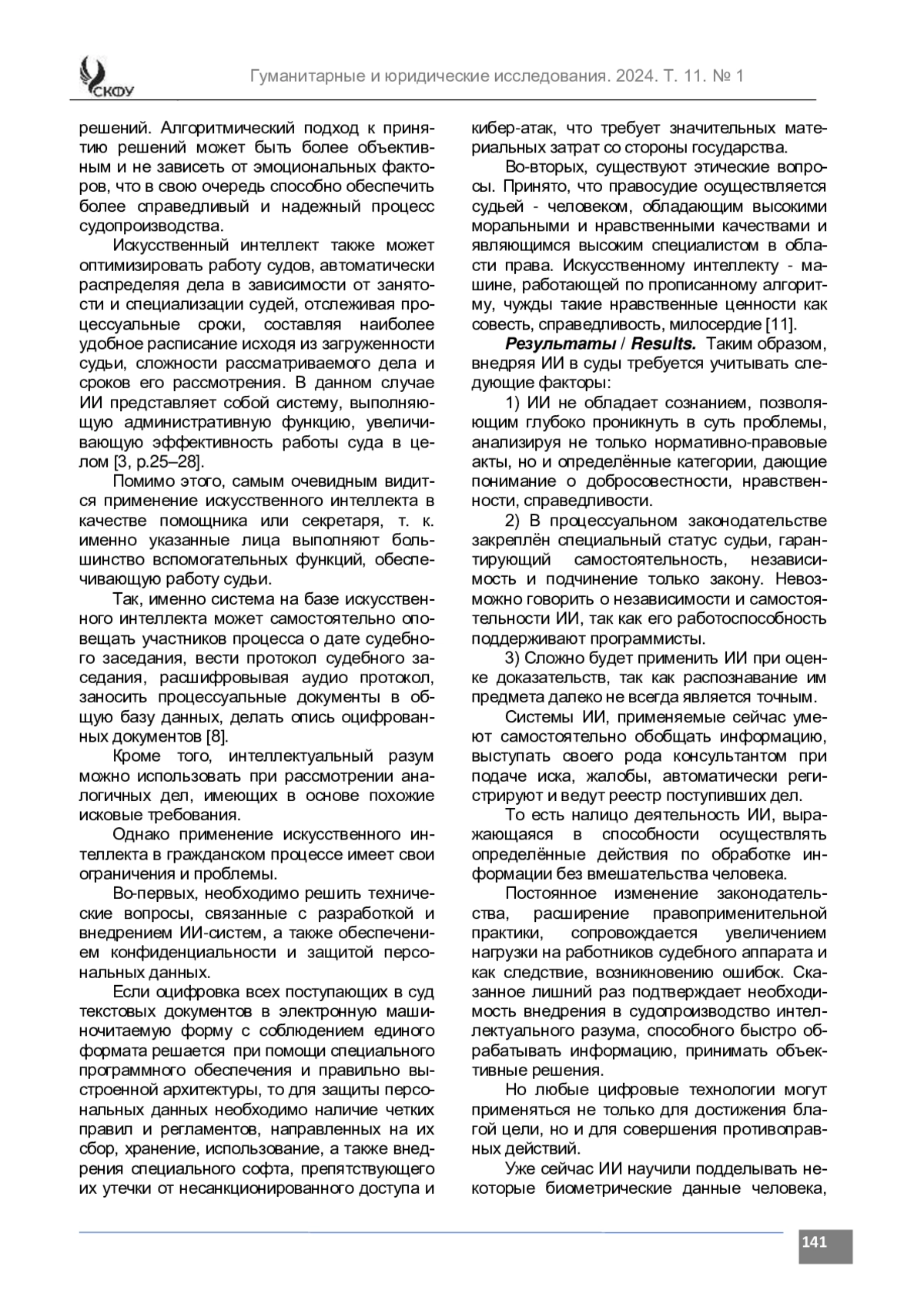 Введение. Изучение роли искусственного интеллекта и его влияния на гражданское судопроизводство представляет собой активно исследуемую проблему, поскольку его внедрение становится повсеместным.