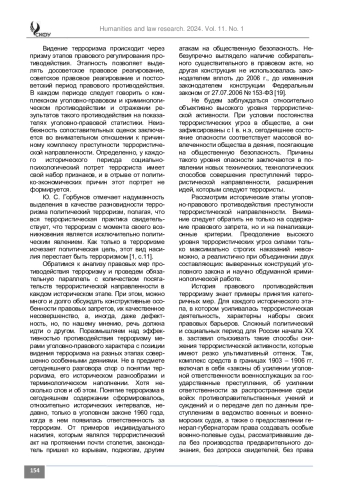 4. Исаева Т. Б. Законодательство и наука советского государства о терроризме // История государства и права. 2009. №1. С. 34-36.