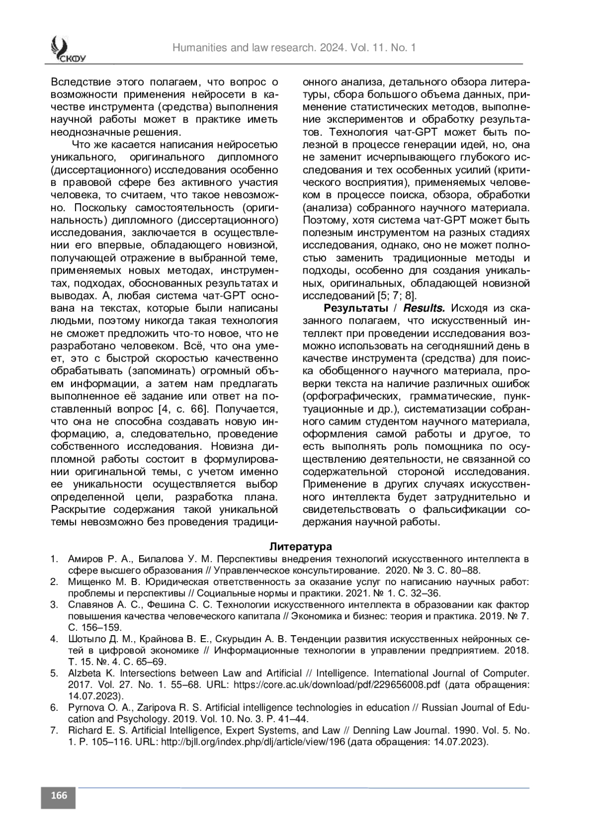 5. Alzbeta K. Intersections between Law and Artificial // Intelligence. International Journal of Computer. 2017. Vol. 27. No. 1. 55-68. URL: https://core.ac.uk/download/pdf/229656008.pdf (дата обращения: 14.07.2023).