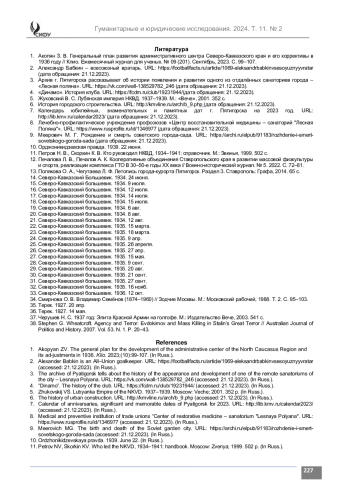 1. Акопян З. В. Генеральный план развития административного центра Северо-Кавказского края и его коррективы в 1936 году // Клио. Ежемесячный журнал для ученых. № 09 (201). Сентябрь, 2023. С. 99-107.