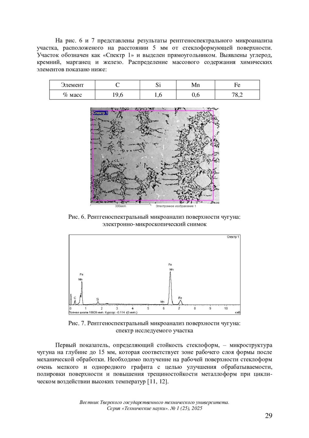6. 	Раткевич Г.В., Ботянов Е.В., Лаврентьев Е.А. Растровая электронная микроскопия чугуна для стеклоформ // Вестник Тверского государственного университета. Серия: Физика. 2011. № 15. С. 44-50.  EDN: PBZXPZ
