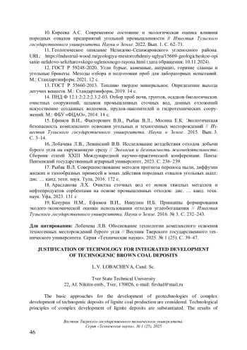 15. Ефимов В.И., Факторович В.В., Рыбак В.Л., Мосина Е.К. Экологическая безопасность комплексного освоения угольных и техногенных месторождений // Известия Тульского государственного университета. Науки о Земле. 2015. Вып. 3. С. 3-14. EDN: VCQOVZ