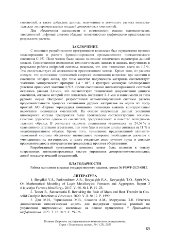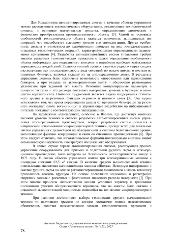 До сих пор отсутствует возможность проведения анализа рудного сырья для формирования шихты непосредственно перед ее загрузкой в бункер дозатора, при этом на практике загружаемый материал нередко может различаться по химическому составу [2], что существенно усложняет моделирование и автоматизацию данного процесса.