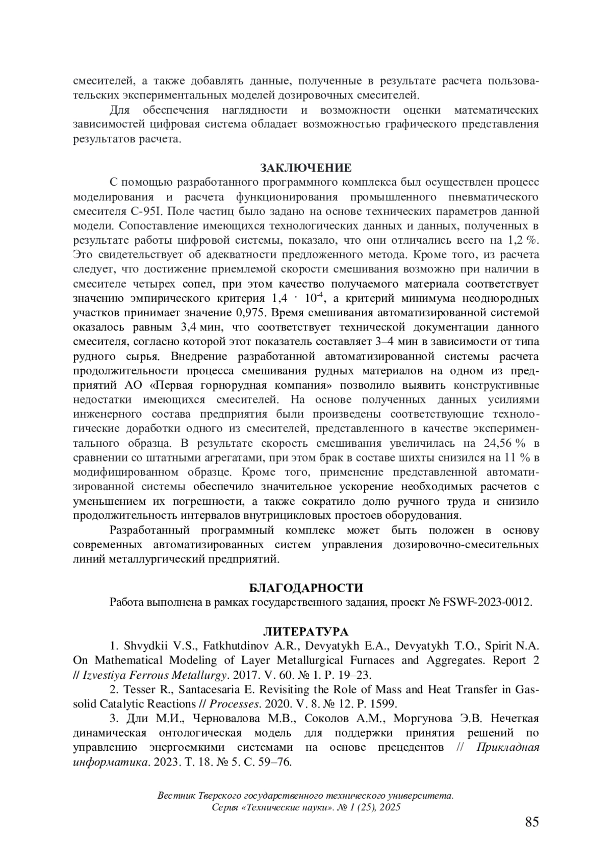 1. 	Shvydkii V.S., Fatkhutdinov A.R., Devyatykh E.A., Devyatykh T.O., Spirit N.A. On Mathematical Modeling of Layer Metallurgical Furnaces and Aggregates. Report 2 // Izvestiya Ferrous Metallurgy. 2017. V. 60. № 1. P. 19-23.