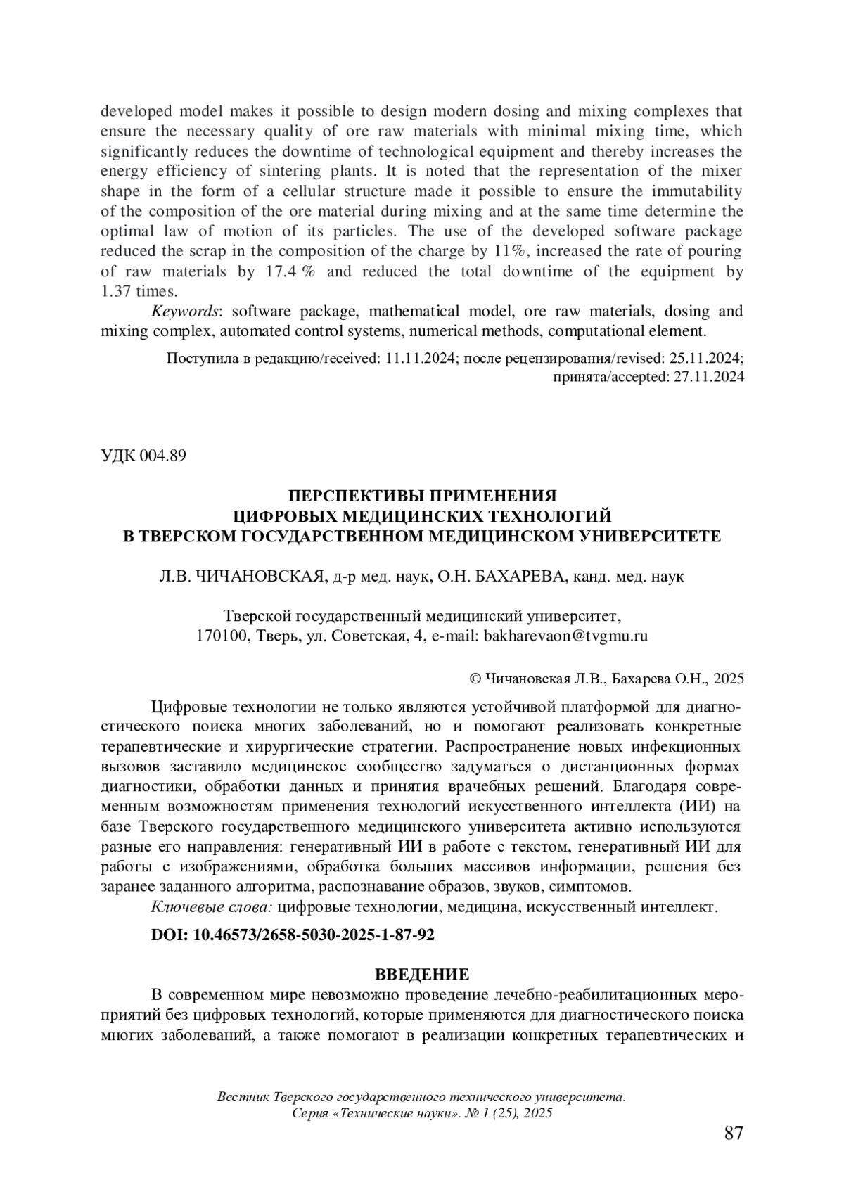 Цифровые технологии не только являются устойчивой платформой для диагностического поиска многих заболеваний, но и помогают реализовать конкретные терапевтические и хирургические стратегии. Распространение новых инфекционных вызовов заставило медицинское сообщество задуматься о дистанционных формах диагностики, обработки данных и принятия врачебных решений. Благодаря современным возможностям применения технологий искусственного интеллекта (ИИ) на базе Тверского государственного медицинского университета активно используются разные его направления: генеративный ИИ в работе с текстом, генеративный ИИ для работы с изображениями, обработка больших массивов информации, решения без заранее заданного алгоритма, распознавание образов, звуков, симптомов