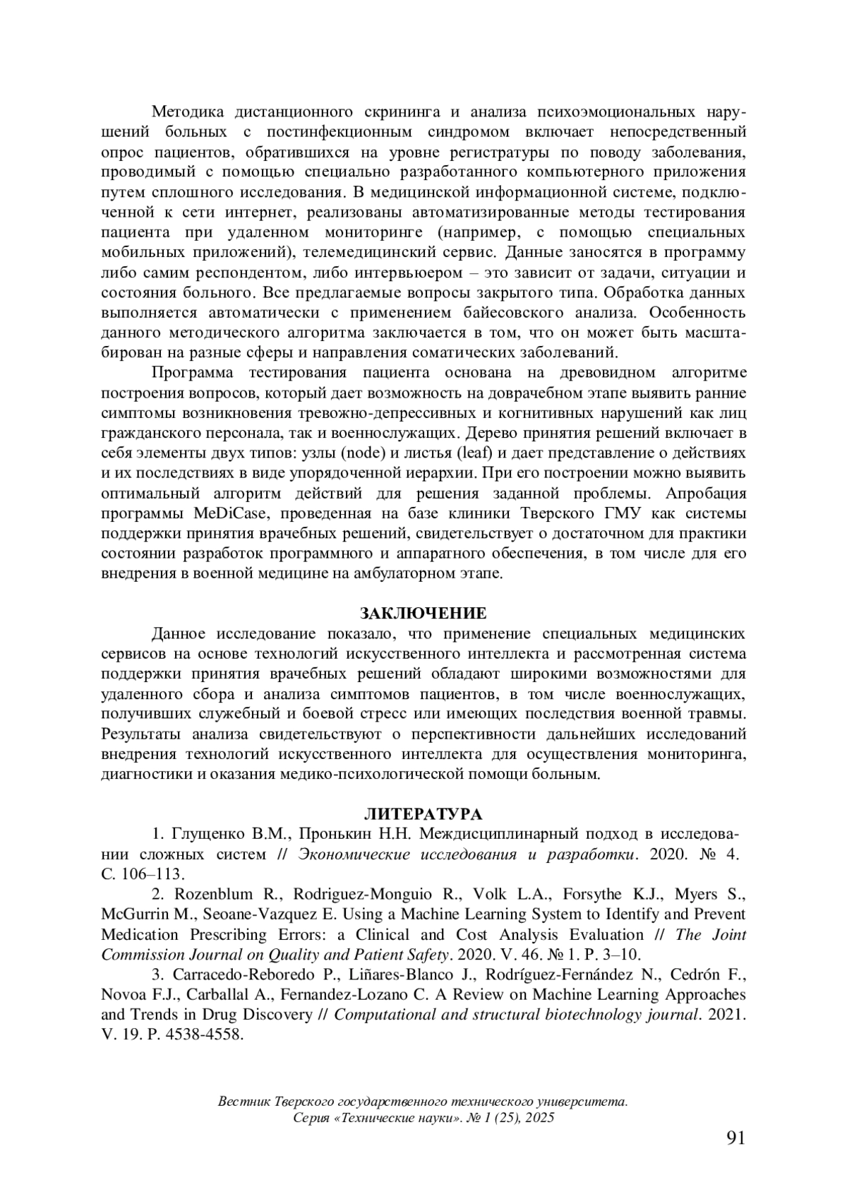 2. 	Rozenblum R., Rodriguez-Monguio R., Volk L.A., Forsythe K.J., Myers S., McGurrin M., Seoane-Vazquez E. Using a Machine Learning System to Identify and Prevent Medication Prescribing Errors: a Clinical and Cost Analysis Evaluation // The Joint Commission Journal on Quality and Patient Safety. 2020. V. 46. № 1. P. 3-10.