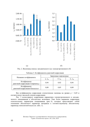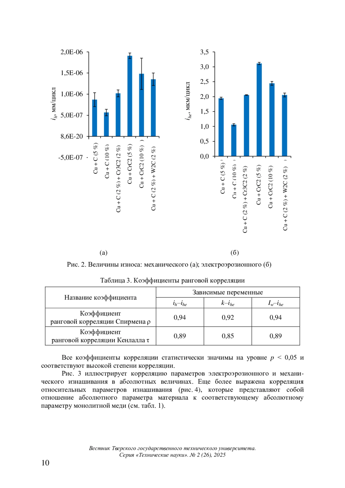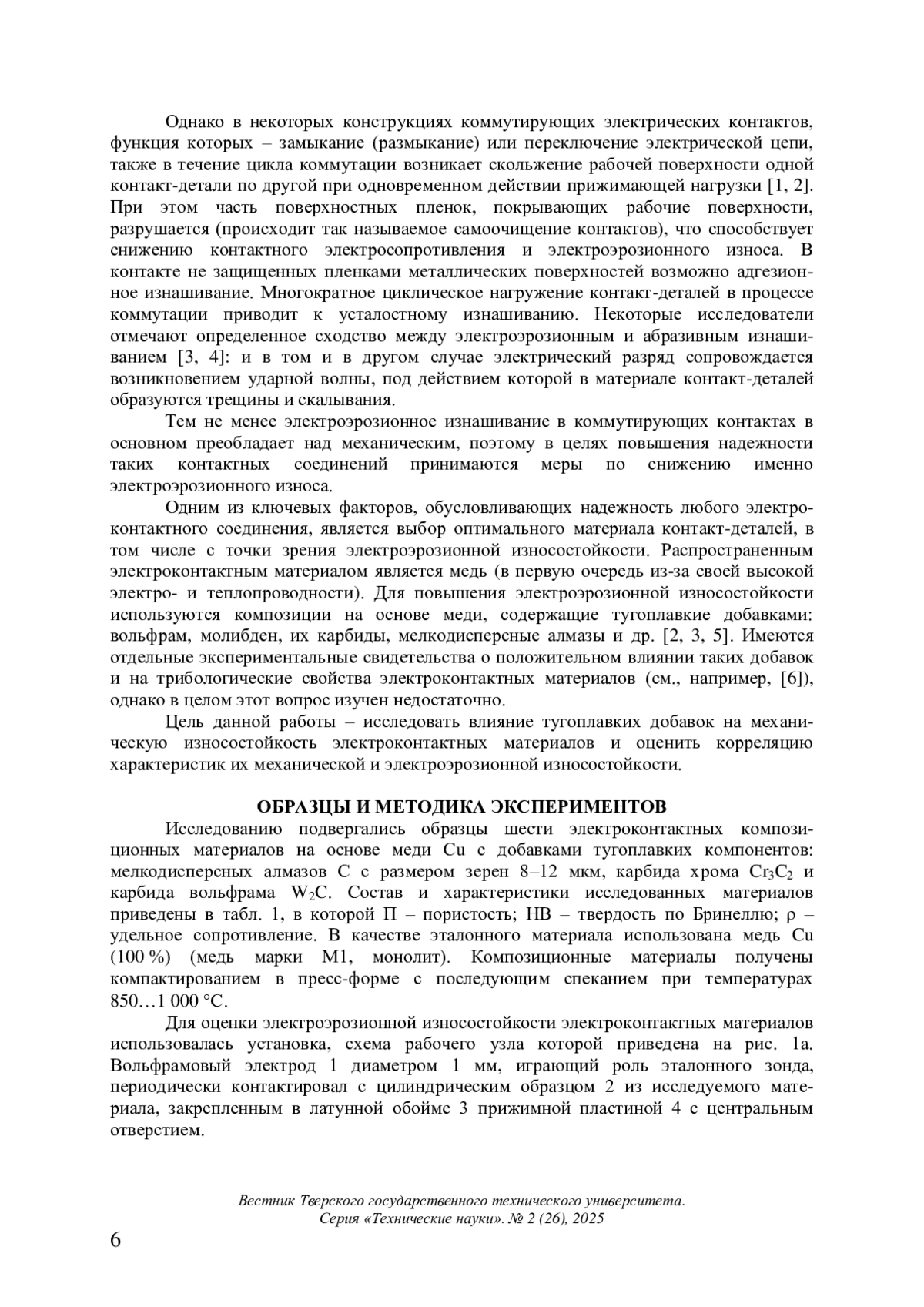 Приведены сравнительные экспериментальные данные по электроэрозионной и абразивной износостойкости композиционных материалов на основе меди для коммутирующих электроконтактных устройств с тугоплавкими добавками, изначально предназначенными для повышения электроэрозионной износостойкости материала. В качестве добавок использованы мелкодисперсные технические алмазы, карбиды хрома и вольфрама и их сочетания. Эксперименты выявили значительную степень корреляции характеристик электроэрозионного и абразивного изнашивания исследованных материалов. Показано, что некоторые добавки, повышающие электроэрозионную износостойкость материала, увеличивают его абразивную износостойкость. Сделан вывод, что такие материалы целесообразно использовать для изготовления деталей коммутирующих электроконтактных устройств, конструкция которых предусматривает в процессе коммутации относительное скольжение контакт-деталей