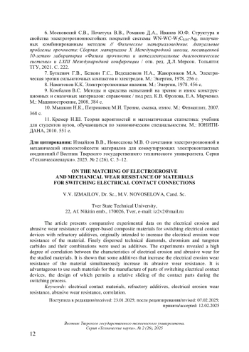 3. 	Берент В.Я. Материалы и свойства электрических контактов в устройствах железнодорожного транспорта. М.: Интекст, 2005. 408 с.  EDN: XATECV