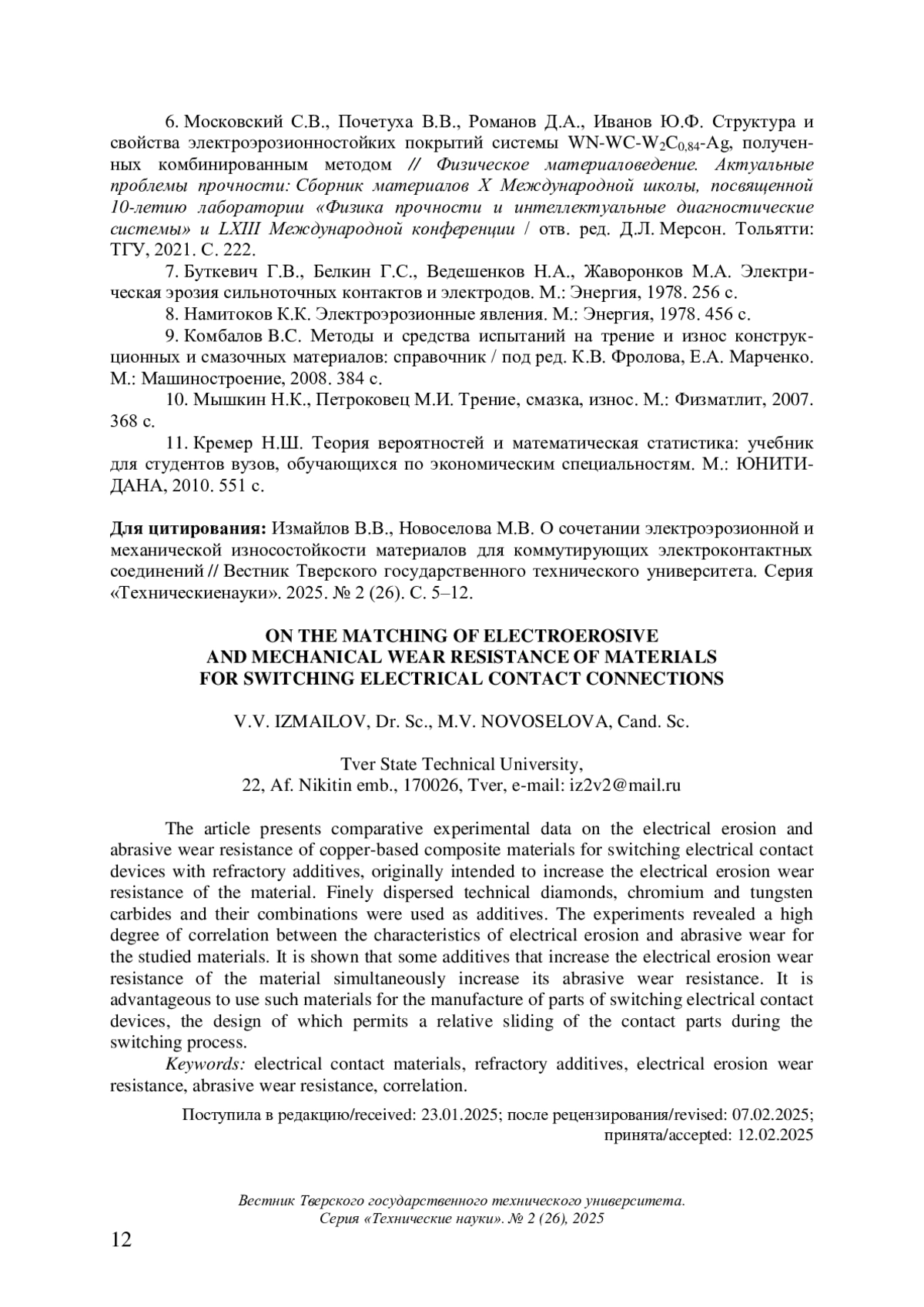 6. 	Московский С.В., Почетуха В.В., Романов Д.А., Иванов Ю.Ф. Структура и свойства электроэрозионностойких покрытий системы WN-WC-W2C0,84-Ag, полученных комбинированным методом // Физическое материаловедение. Актуальные проблемы прочности: Сборник материалов X Международной школы, посвященной 10-летию лаборатории “Физика прочности и интеллектуальные диагностические системы” и LXIII Международной конференции / отв. ред. Д.Л. Мерсон. Тольятти: ТГУ, 2021. С. 222.  EDN: GFQEWT