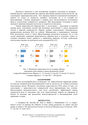 16. 	Голышев А.А. Стандартизация лазерно-кислородной резки по критерию шероховатости поверхности // Обработка металлов. 2016. № 1 (70). С. 16-21.