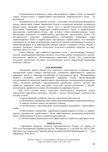 2. 	Рутковский Б.Т. Блоковый способ отработки месторождений открытым способом // Добыча угля открытым способом. 1972. № 1. С. 81-87.