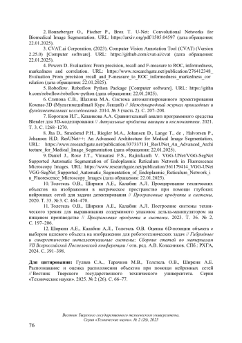 2. 	Ronneberger O., Fischer P., Brox T. U-Net: Convolutional Networks for Biomedical Image Segmentation. URL: https://arxiv.org/pdf/1505.04597 (дата обращения: 22.01.2025).