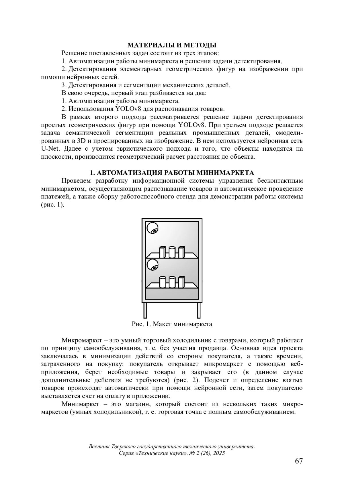 11. 	Толстель О.В., Ширкин А.Е., Калабин А.Л. Построение системы технического зрения для выравнивания содержимого упаковок дельта-манипулятором на пищевом производстве // Программные продукты и системы. 2023. Т. 36. № 2. С. 197-206.
