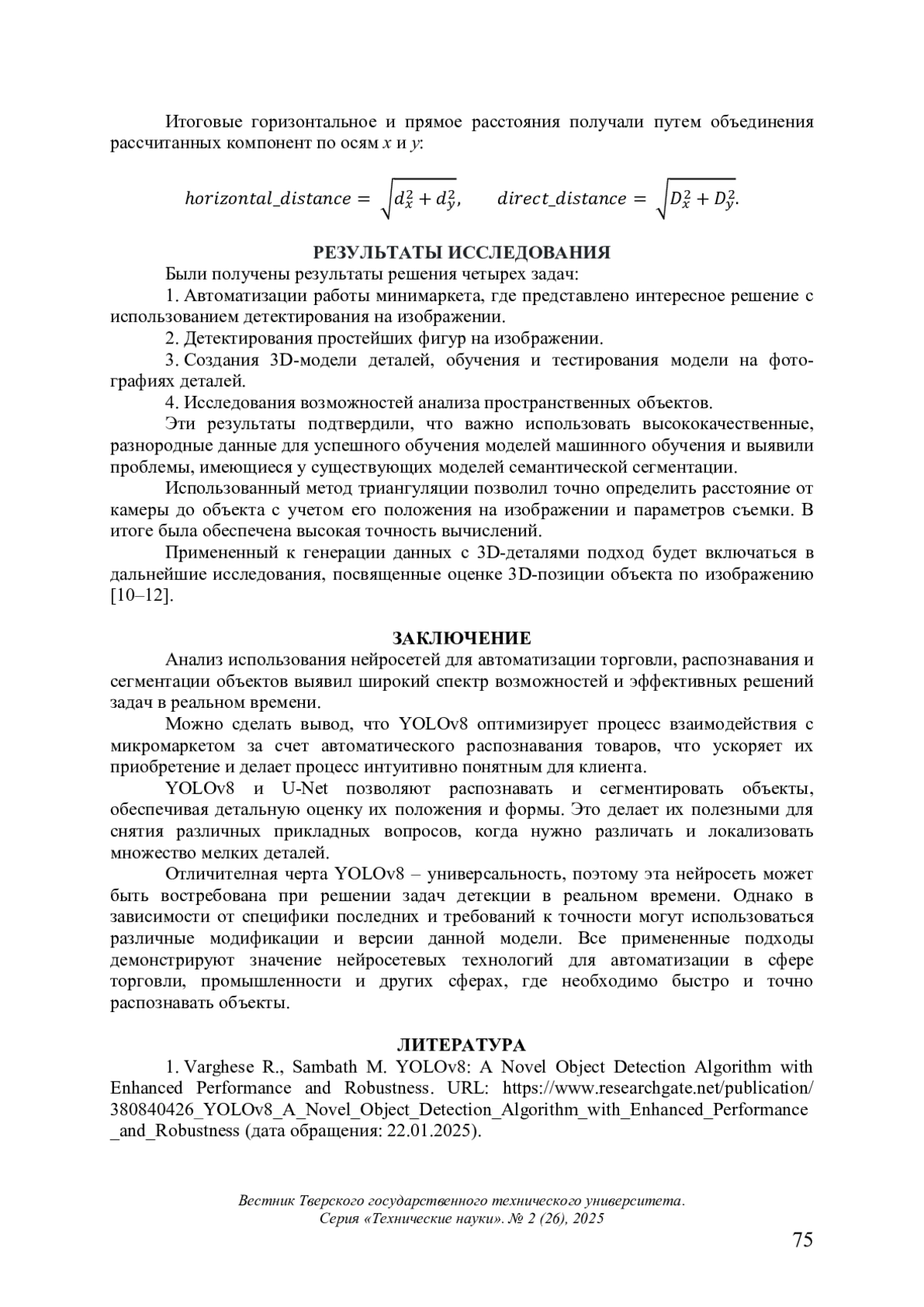 1. 	Varghese R., Sambath M. YOLOv8: A Novel Object Detection Algorithm with Enhanced Performance and Robustness. URL: https://www.researchgate.net/publication/380840426_YOLOv8_A_Novel_Object_Detection_Algorithm_with_Enhanced_Performance_and_Robustness (дата обращения: 22.01.2025).