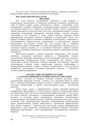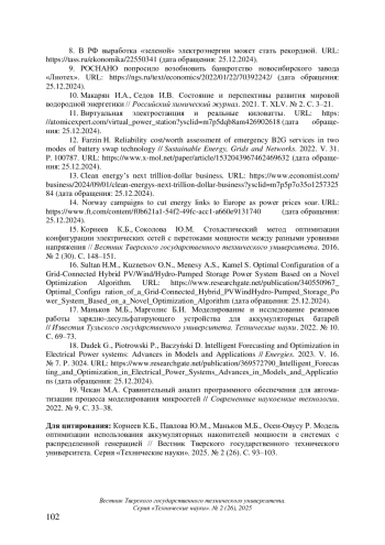 18. 	Dudek G., Piotrowski P., Baczyński D.Intelligent Forecasting and Optimization in Electrical Power systems: Advances in Models and Applications // Energies. 2023. V. 16. № 7. P. 3024. URL: https://www.researchgate.net/publication/369572790_Intelligent_Forecasting_and_Optimization_in_Electrical_Power_Systems_Advances_in_Models_and_Applications (дата обращения: 25.12.2024).  EDN: MOUKHZ