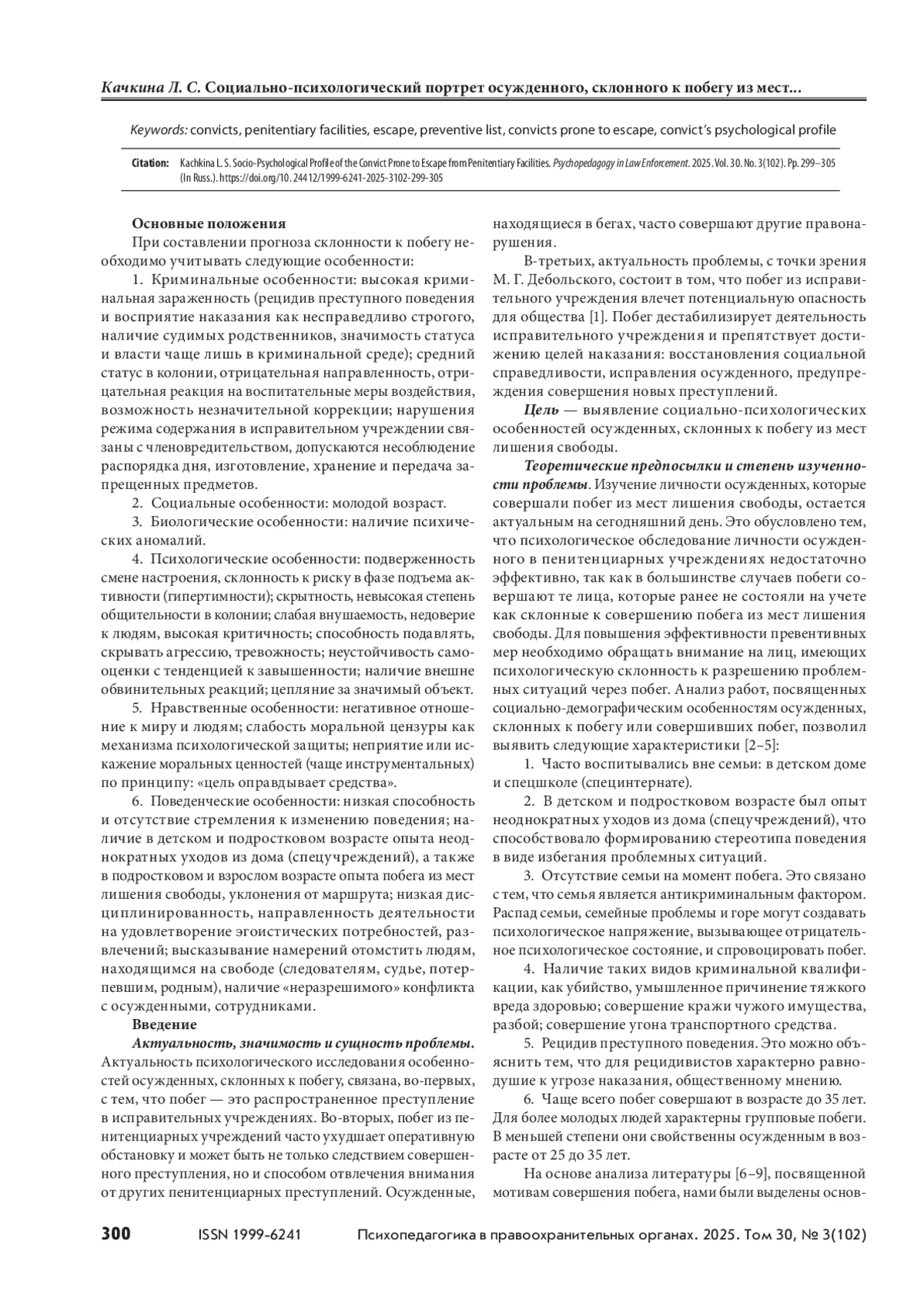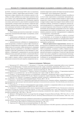 7. Стародубцева О. Н. Личность пенитенциарного преступника, склонного к совершению побега из мест лишения свободы // Вестник Волгоградской академии МВД России. 2022. № 3(62). С. 37–44.