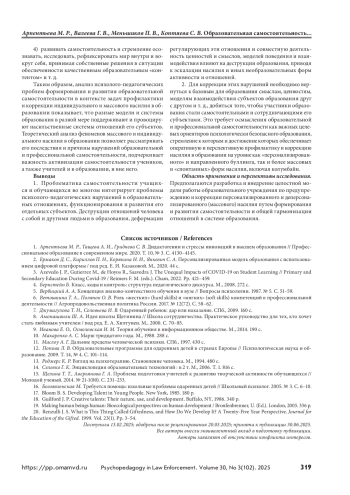1. Арпентьева М. Р., Тащева А. И., Гриднева С. В. Дидактогении и стрессы инноваций в высшем образовании // Профессиональное образование в современном мире. 2020. Т. 10, № 3. С. 4130–4145.