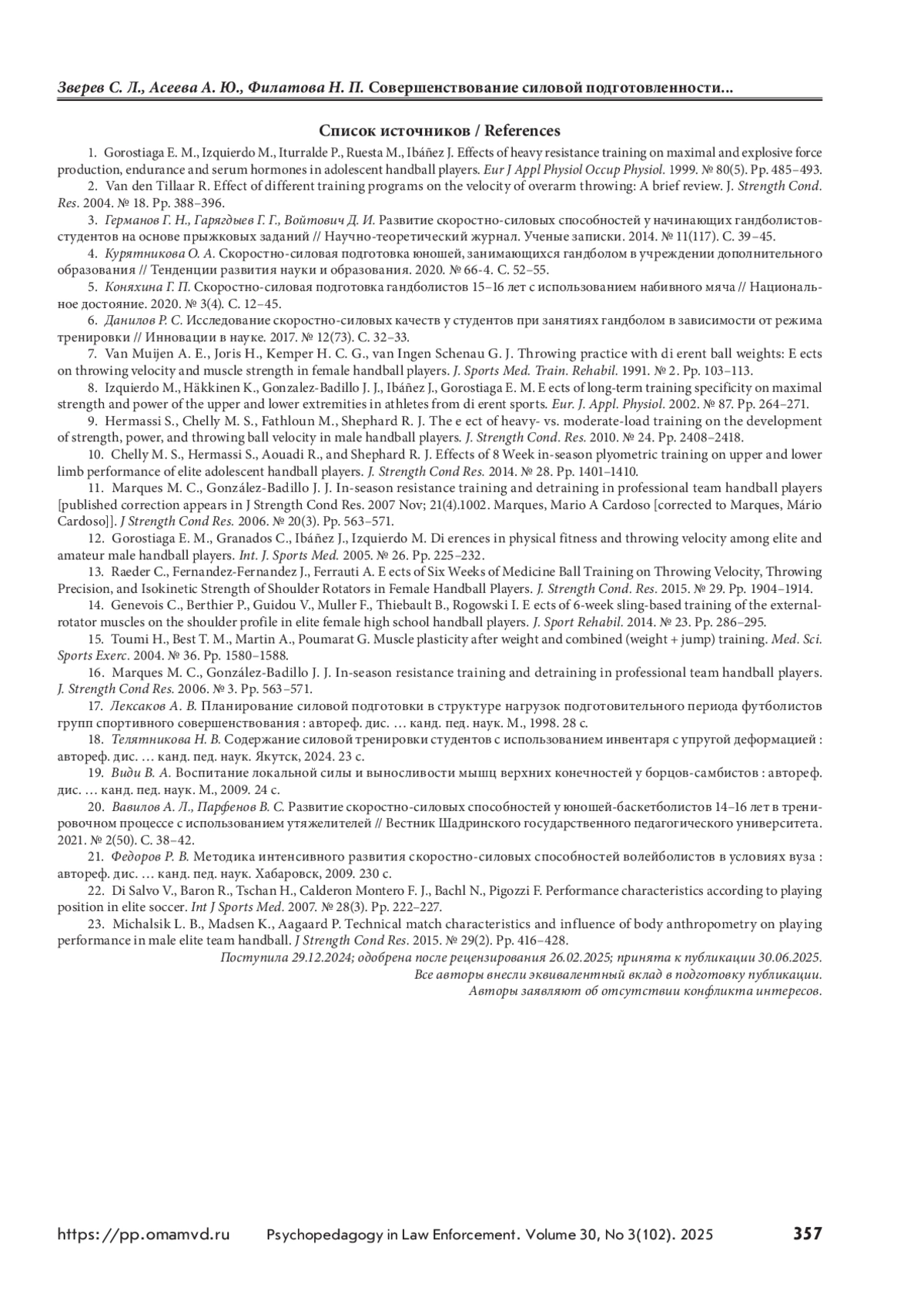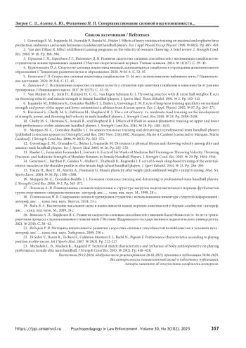 16. Marques M. C., González-Badillo J. J. In-season resistance training and detraining in professional team handball players. J. Strength Cond Res. 2006. № 3. Рр. 563–571.