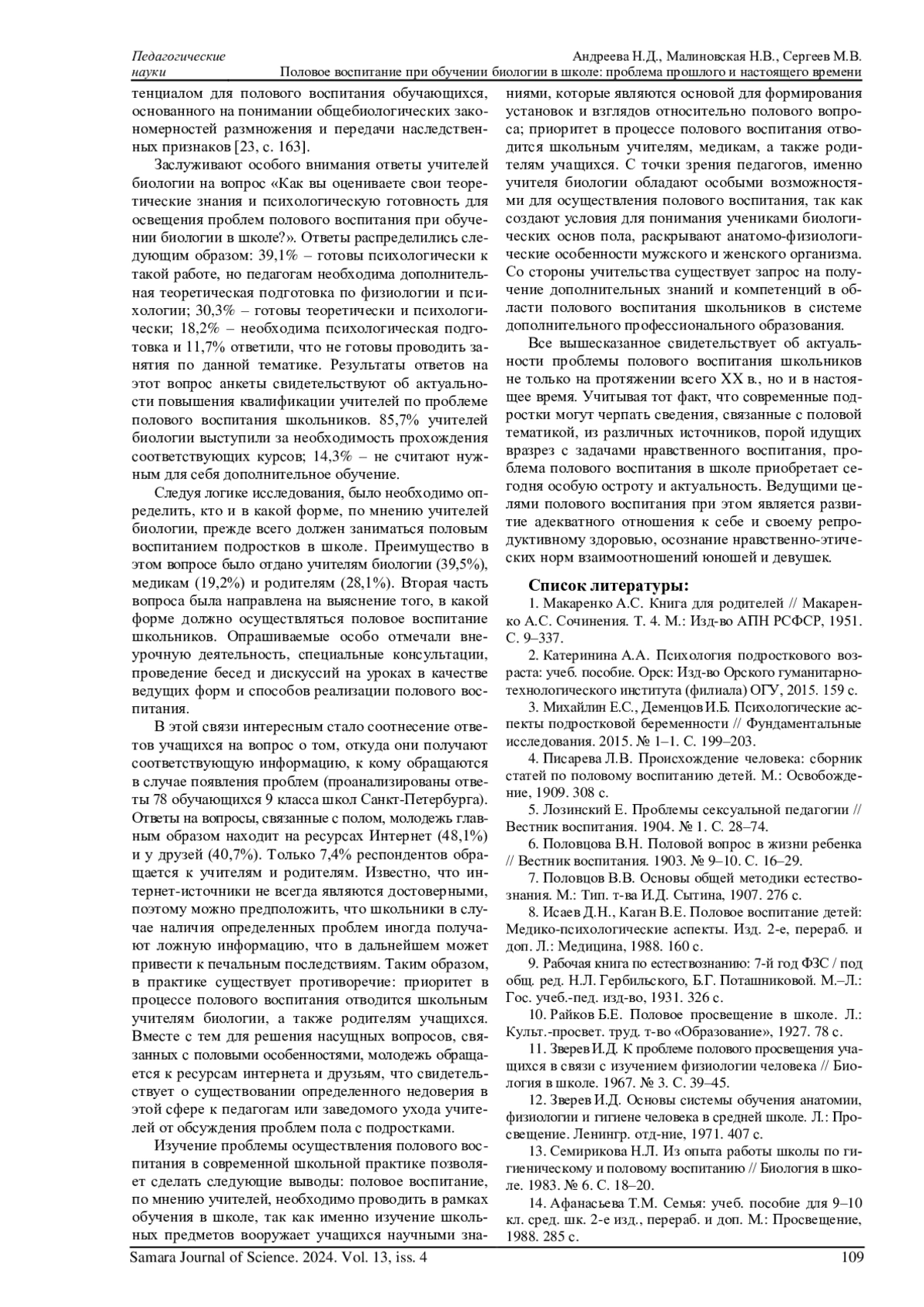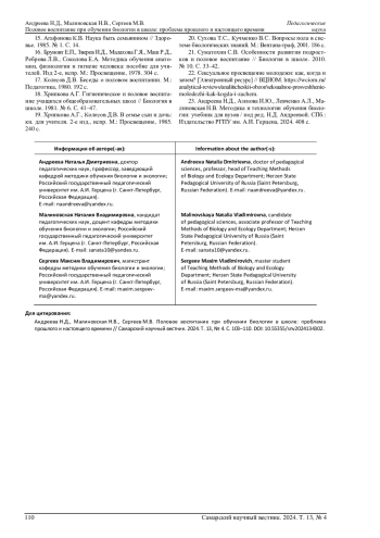 21. 	Суматохин С.В. Особенности развития подростков и половое воспитание // Биология в школе. 2010. № 10. С. 33-42. EDN: MWGXPB